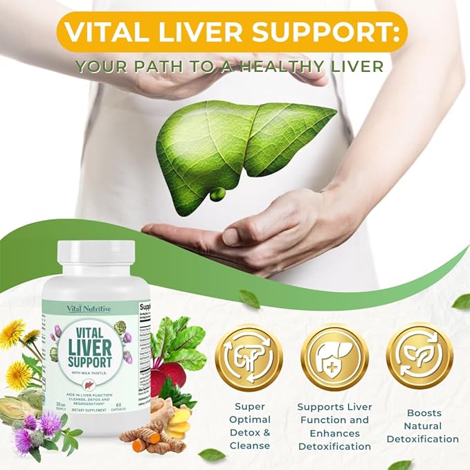 • Optimal Cleanse and Detox: Vital Liver Support contains ingredients traditionally used to aid the liver’s natural detoxification processes, helping maintain overall liver function and contributing to your body's wellness