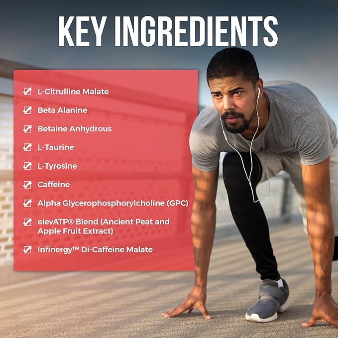 • Trademarked energy formula: Our clean pre workout powder features exclusive compounds such as Infinergy Di-caffeine malate and elvATP, providing clean, sustained energy throughout your workout without any crash. This formula ensures you stay energized from start to finish.