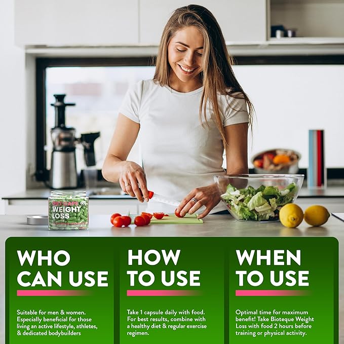 • Fast and Consistent Outcomes – Bioteque Lab capsules are fast weight loss supplements that work quickly for women and men, serving as a metabolism booster and effective appetite suppressant that targets belly fat. Designed to enhance the body's fat-burning process and support efficient weight loss, these capsules are considered one of the best products for achieving your goals. Experience the benefits of our natural weight loss pills welcoming a healthier you!