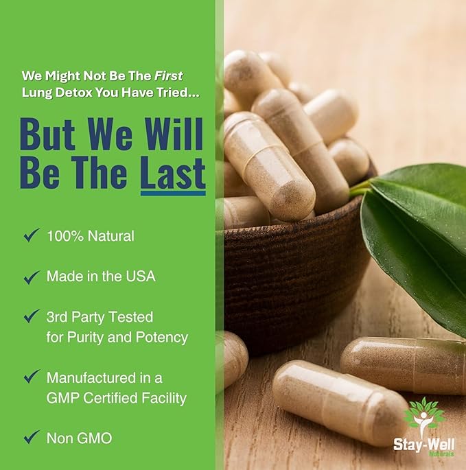 • All-Natural Lung Detox – Cleanse and detoxify chemicals that can adversely affect your respiratory health with this all-natural formula of herbs and nutrients. If you have a history of smoking or exposure to environmental chemicals, Mullein Lung Detox can help you recover your lung health.