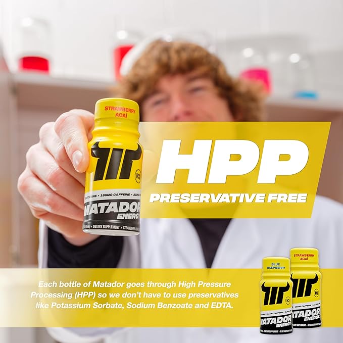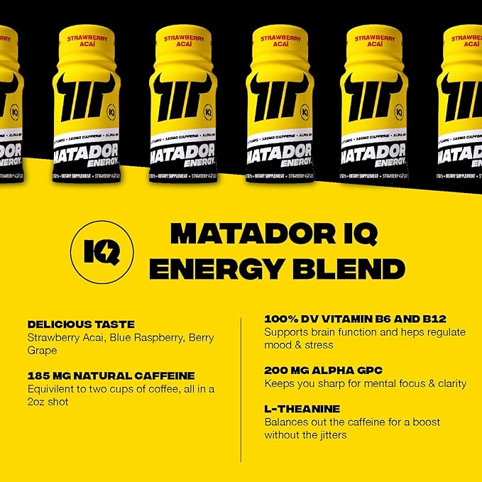 • FINALLY A NEW ENERGY SHOT: Matador is a new better-for-you energy shot formulated with NO sugar, NO synthetic caffeine, NO artificial flavors, or colors. Prioritize performance with 185 MG of natural caffeine from coffee beans and a nootropic blend for balanced energy and focus.