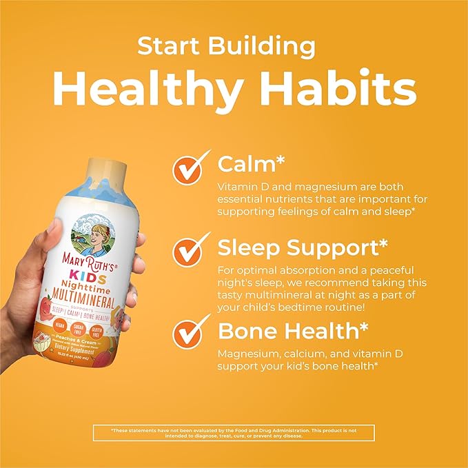 Kids Liquid Nighttime Multimineral by MaryRuth's | Kids Vitamins | Bone Health | Calm Calcium Magnesium Supplement | Vegan | Sugar Free | 30-180 Servings | 15.22 fl oz