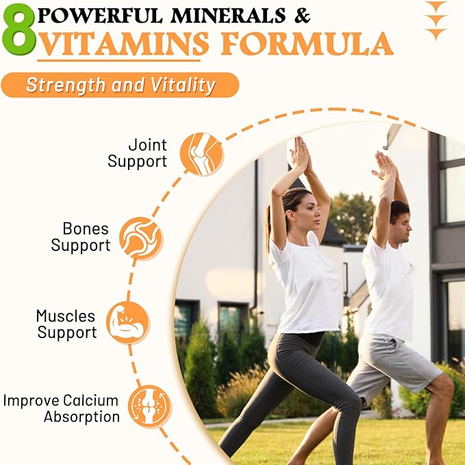 • ADVANCED FORMULA WITH MULTIPLE BENEFITS: Our scientifically formulated gummies are packed with essential nutrients—calcium, magnesium, zinc, vitamins D3 and K2, vitamin C, potassium, and sodium—to support bone strength, healthy teeth, muscle function, and overall wellness