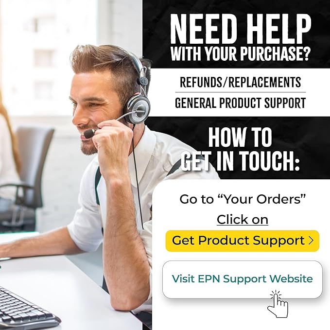• 🚨SATISFACTION GUARANTEE: Not fully satisfied? Please contact us FIRST so we can provide a refund/resolution! Go to "your orders", then click on this product. Then click "Get Product Support". From there, click "Visit EPN Supplements Support Site" to contact us!