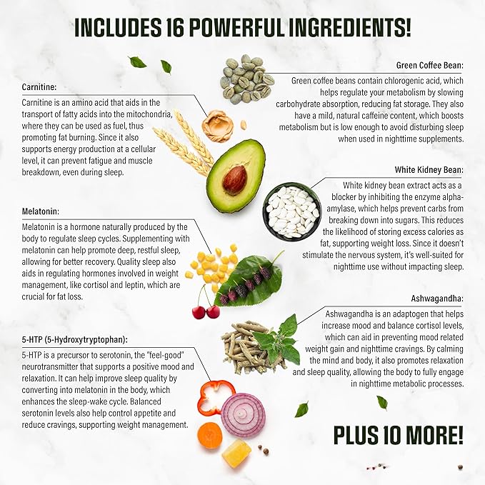 • Enhanced Metabolism for Overnight Calorie Burn: Packed with powerful metabolism boosters like L-carnitine and green tea extract, Sleep Shred PM fuels your body’s calorie-burning potential so you can target stubborn fat stores even while you sleep, giving you results without the need for overnight fasting.