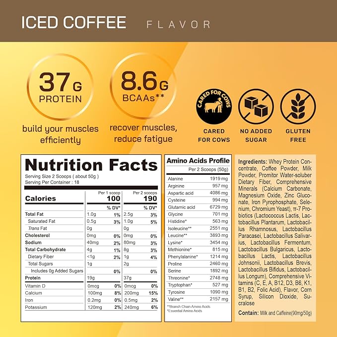 • Optimize: Muscle Recovery. Fuel up with 37g protein and 8.6g BCAAs, key for muscle repair and growth after tough workouts, keeping you ready for action.