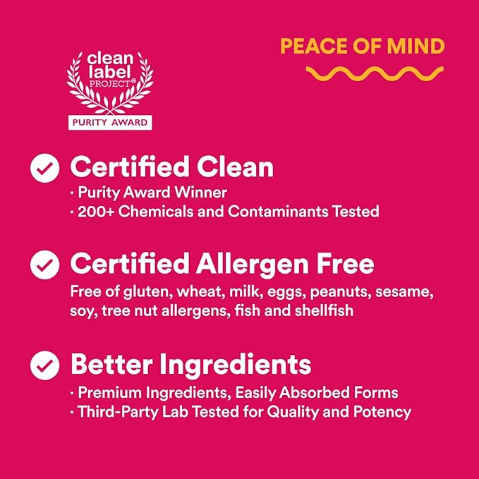 • CERTIFIED CLEAN, THIRD PARTY TESTED FORMULA: Our women’s vitamins are a Clean Label Project Purity Award Winner! Subjected to strict testing for 200+ contaminants and chemicals, so you can be sure you're taking high quality vitamins you can trust