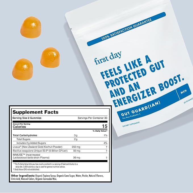 • Fight Fatigue, Boost Energy: Always tired after work? Can’t make it to the gym? Get energized with First Day! Our tribiotic gummy is made with IMMUSE, a clinically studied postbiotic that boosts energy, supports exercise performance, and fights fatigue.