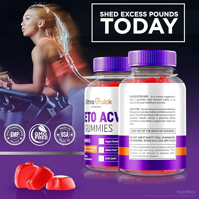 Ultra Quick Keto ACV Gummies, Ultra Quick Keto + ACV, All Natural Supplement, Premium Keto Plus ACV Formula, Apple Cider Vinegar 1000MG, Official UltraQuick Reviews (60 Gummies)