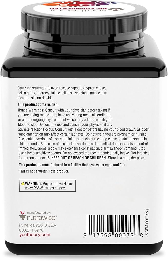 • The Youtheory Promise: Everything we do is based on a dedication to build pure and effective supplements to support our mission to inspire wellness in all