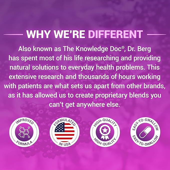 • Powerful (4-in-1) combination: This organic elderberry supplement for adults takes 1000 mg of high-quality Sambucus black elderberry and combines it with a special Dr. Berg blend of Vitamin D3, Zinc, and camu camu (a natural source of Vit