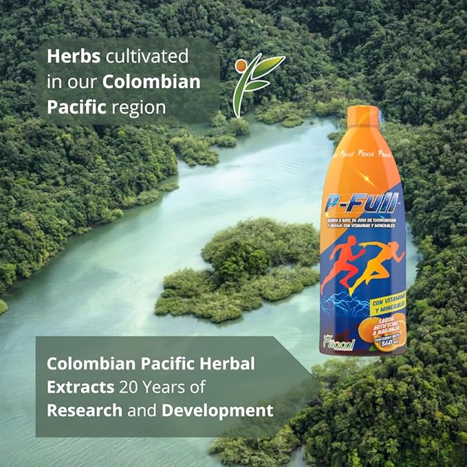 • BENEFITS: P-Full is a potent liquid multivitamin supplement designed to enhance both physical and mental performance. Formulated with natural ingredients like Colombian chontaduro and borojo, it provides the essential liquid vitamins and minerals needed to infuse energy and vitality into your daily routine.