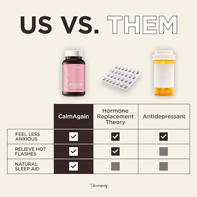 BB Company CalmAgain Menopause Support, Relief & Hormone Balance - Nervousness Relief, Mood Support, Hot Flashes, Night Sweats - Feel Calm - Antioxidant Rich Siberian Rhubarb, Sage, Saffron (30 Ct)