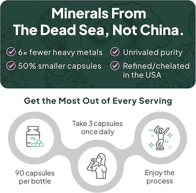 • Sourced from the Dead Sea: Our magnesium and zinc are carefully extracted from the most mineral-rich oceans in the world and then chelated in Utah. Never touching China, the result is a formula boasting unrivaled purity, delivering maximum results and unmatched absorption.