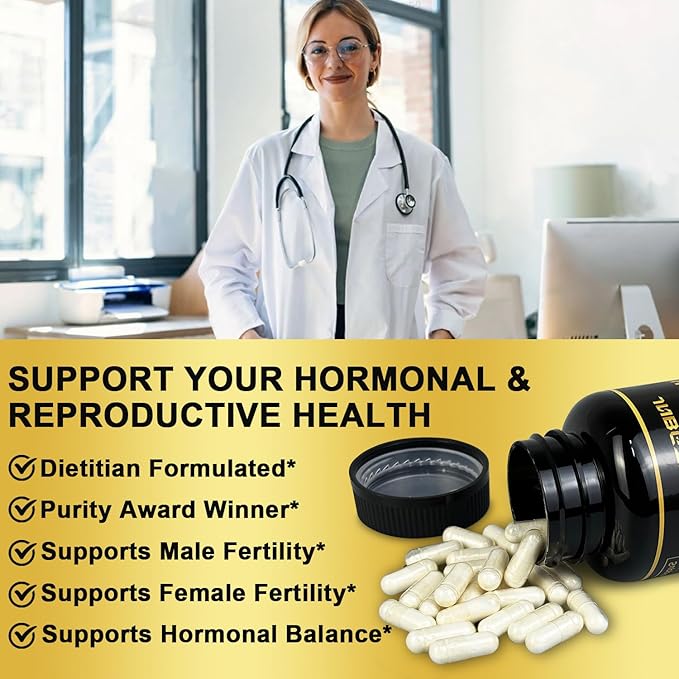 • Versatile Suppor - This nutritional supplement is designed to complement a healthy lifestyle by promoting hormonal balance and overall wellness, supporting the body's natural processes, not only supporting male fertility and female reproductive health and restoring balance to the menstrual cycle. Help improve metabolism, energy, bloating, skin health and more