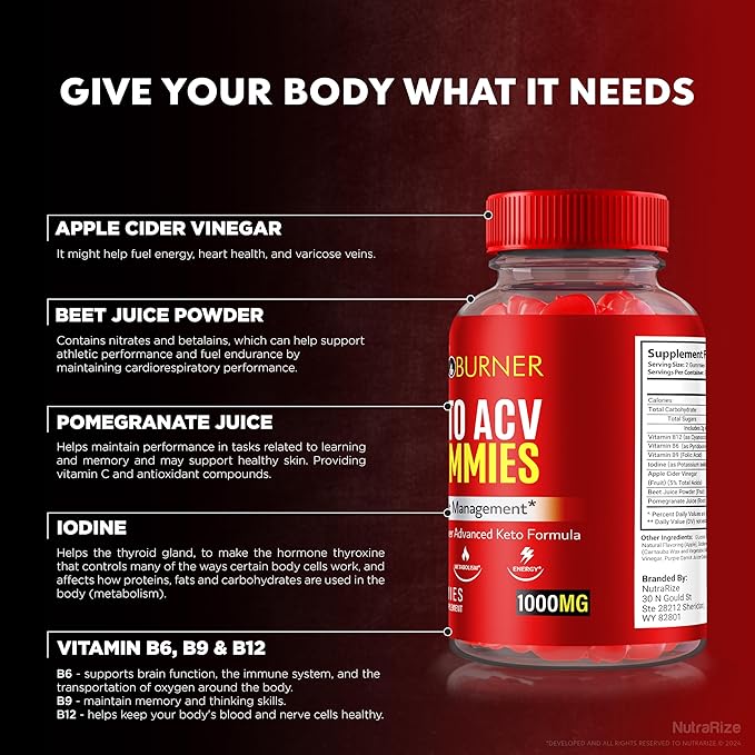Keto Burner ACV Gummies, Keto Burner Keto ACV for Weight Loss, All Natural Keto Plus Apple Cider Vinegar Gummy, Advanced Keto+ACV, Official KetoBurner Brand Reviews (60 Gummies)