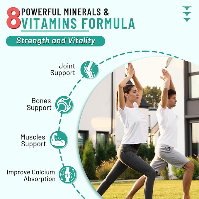 • Stronger Bone For Adults & Kids: As we age, our bones deteriorate, making them weak and fragile. Just 2 Vegan Sugar-Free Calcium Gummies a day bring you 600mg calcium, 400mg magnesium glycinate, 15mg zinc and vitamin d3, which are all essential to support healthy bone building and help maintain bone density. These nutrients garnered popularity among those looking to build bone health