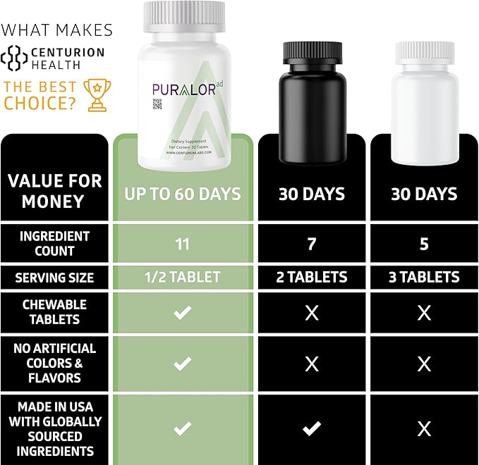 Centurion Premium Puralor AD, Cognitive and Focus Supplement for Kids with Saffron, Folate, Vitamin C, D and Zinc, 30 Chewable Tablets