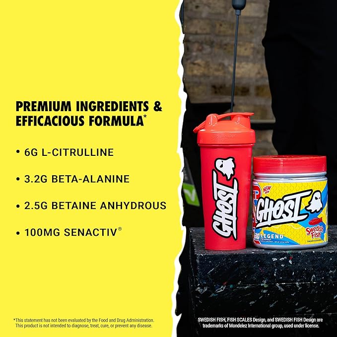 • Legendary Pre-Workout: GHOST Legend pre-workout combines a standout energy & focus formula with premium pump ingredients in the authentic Swedish Fish flavor you know & love to get you feeling like a legend whenever you need it most. V4 provides more energy, more pumps, more focus, and more grams per serving .* 1 scoop per serving, 30 servings per container. Compared to original GHOST Legend pre-workout formula.