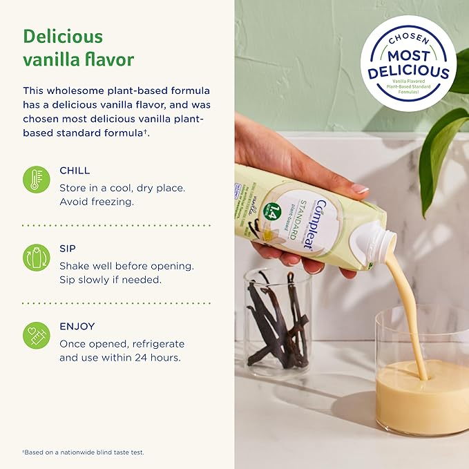 Compleat Standard 1.4 Plant-Based Vanilla Nutrition Shake - 18g Protein, 29 Vitamins & Minerals - Vegan Tube Feeding Formula - 8.45 Fl Oz (Pack of 12)