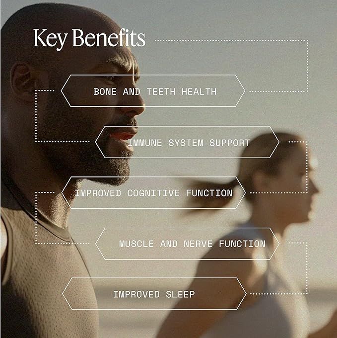 • BONE & JOINT HEALTH - Vitamin D3 ensures optimal calcium absorption, supporting bone density and strength, while magnesium and zinc contribute to overall joint health and inflammation reduction.