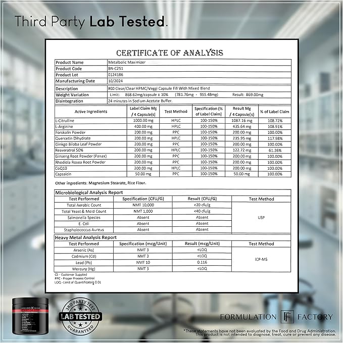 Heart of Steel: 10-in-1 Metabolic Maximizer Nitric Oxide Supplement, Blood Pressure Support, L Arginine, L Citrulline Natural Pre-Workout: Energy Management (120 Capsules - 1 Month)