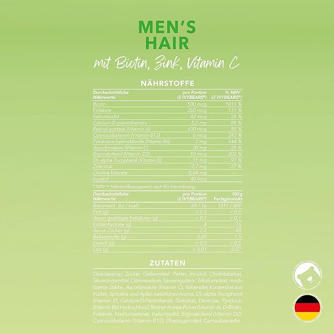 Men’s Hair Vitamins Gummies | Biotin, Folic Acid, & Zinc | Nourishing Hair, Skin & Nails | Salon-Quality Vegan Hair Care | 100% Vitamin Boost