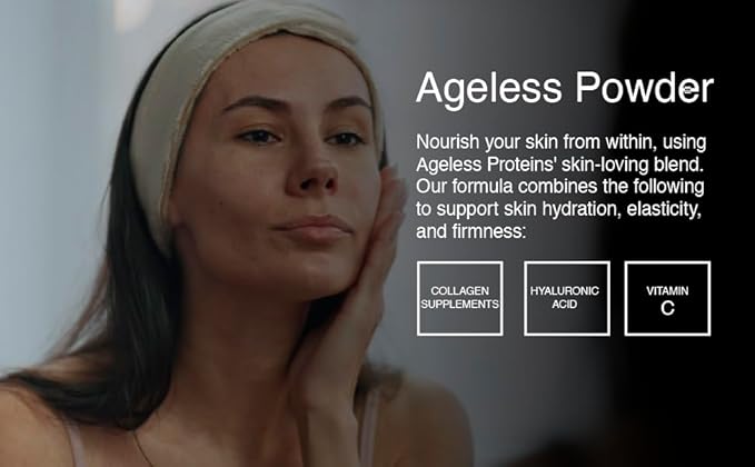 • SKIN REFRESH: Nourish your skin from within, using Ageless Proteins' skin-loving blend. Our formula combines collagen supplements, hyaluronic acid, and vitamin C to support skin hydration, elasticity, and firmness. These ingredients work synergistically to reduce the appearance of fine lines and wrinkles, promoting a more youthful complexion. Invest in your skin's vitality and radiance with a supplement that delivers beauty benefits alongside its fitness support.