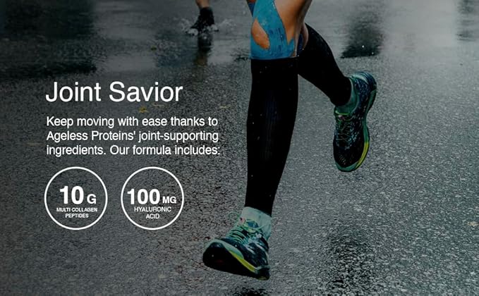 • JOINT SAVIOR: Keep moving with ease thanks to Ageless Proteins' joint-supporting ingredients. Our formula includes 10g of multi collagen peptides and 100mg of hyaluronic acid per serving, working together to lubricate joints, improve flexibility, and reduce discomfort. These key components support cartilage integrity and enhance overall joint function, helping you stay active and enjoy your favorite activities without limitations. Experience improved mobility and comfort with every scoop.