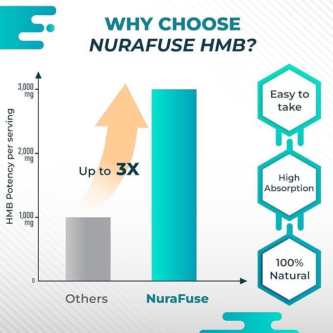 • Outstanding Value with Nurafuse HMB: The Nurafuse formula delivers 3,000 mg per serving of high-quality calcium HMB monohydrate, promoting natural HMB levels, enhancing protein synthesis, and supporting muscle maintenance