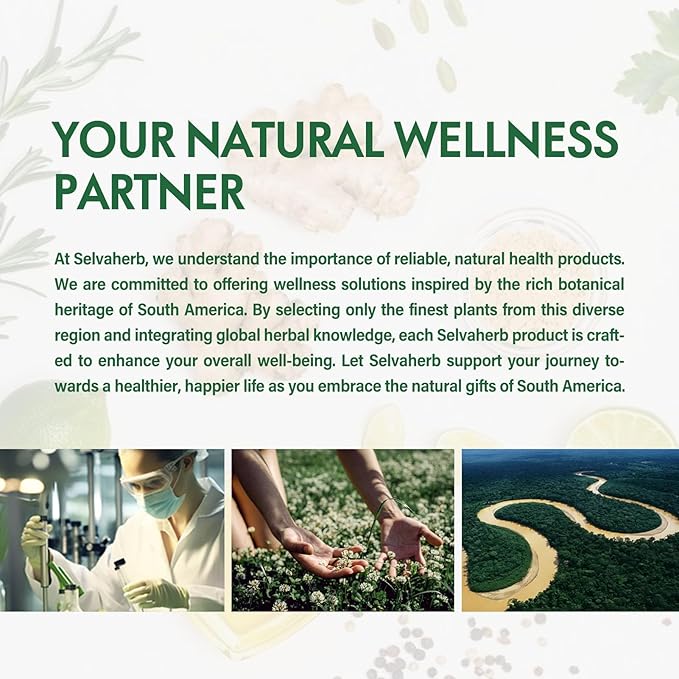• SATISFACTION GUARANTEED: Selvaherb offers reliable herbal health supplements inspired by South America's rich botanical heritage. We use only pure ingredients from around the world and manufacture our products in a CGMP-certified facility. We are dedicated to providing you with the best quality and service. If you are not satisfied with our product, please contact us anytime!