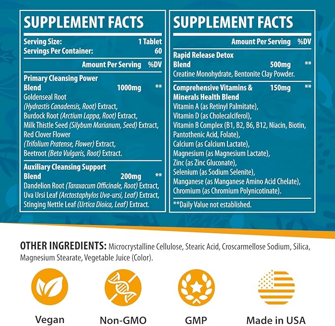 • Safety Guarante:Made with premium ingredients and carefully selected herbs, our cleanser detox is produced to the highest standards, ensuring purity and potency. Each bottle contains 60 vegan tablets (2 cm in size), which can be chewed,and cut in half swallowed with water for easy consumption. Enjoy a reliable and effective detox experience with every serving.
