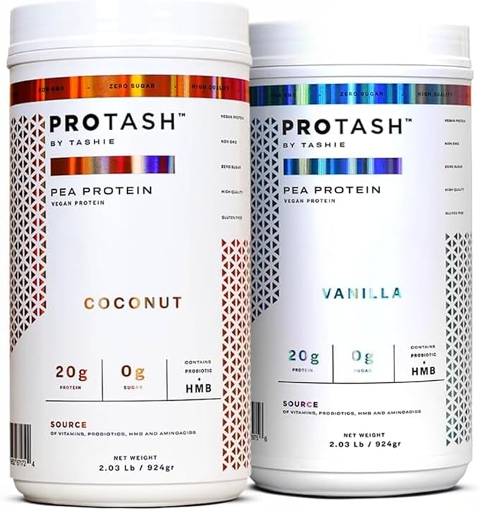 • PROTASH Vegan Protein Powder by TASHIE, 20g Pea Protein for Men and Women, Non GMO, Zero Sugar, Contains Probiotic & HMB